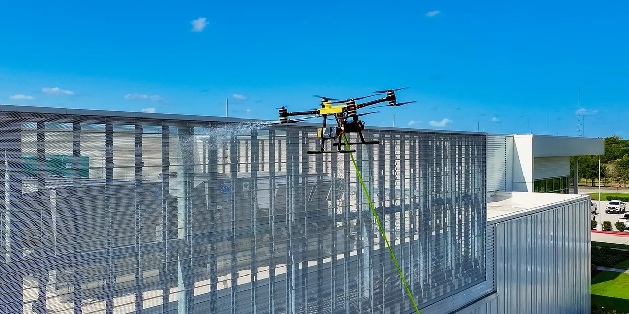 Cleaning drones designed to tackle tough cleaning tasks in industrial environments, such as factories and warehouses, ensuring safety and precision at heights.